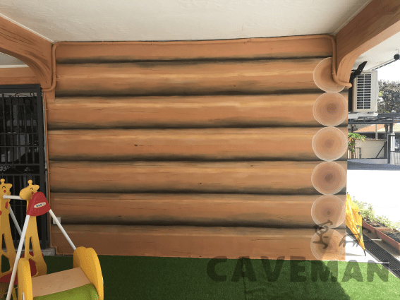 This direction is not over used like all other kindies (Fairy tale, Disney theme etc), the forest cabin theme embraced all their vision of harmony, peace and delight perfectly. Their building also happens to have the perfect setup to take the shape and foam of a forest tree log wooden cabin.