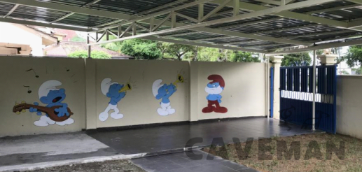Ironically, kindergarten companies would entrust such complicated design endeavour to the least understood and least conceivable party (the contractors and foreign workers) to carry out painting works. The owner tried to balance out the place by contracting mural artists to paint the brick wall fence in various colours however, it is already too late. The pink and mural simply looks really strange.