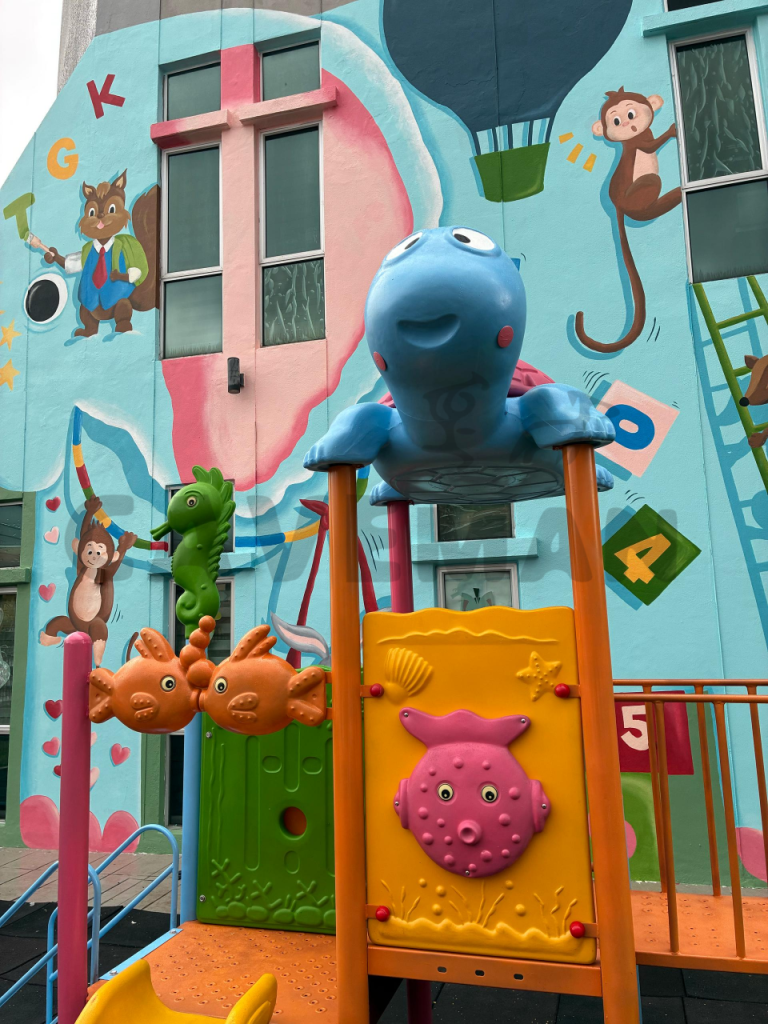 Although the colours have faded and worn out, playgrounds are still fully functional. The only draw back is it looks unappealing for the leads and customers who is in the premise – First impressions are really important.