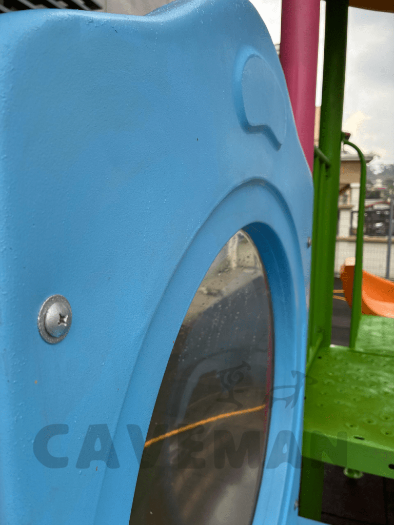Cracks on plastic playgrounds are sealed with paint to eliminate scratches or injury
